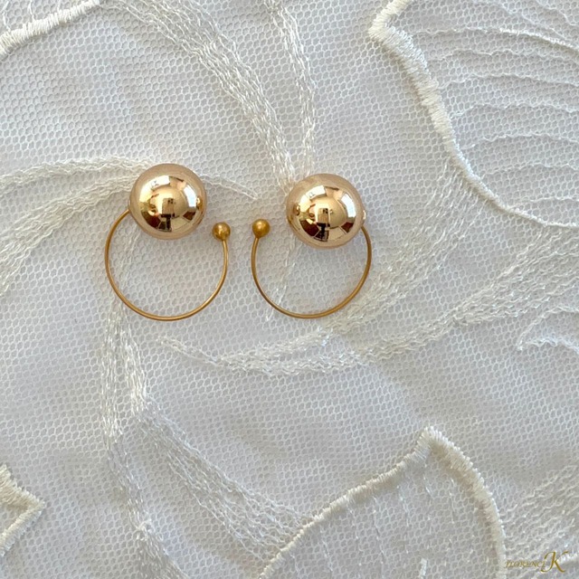 耳元に、気品と輝きを。 まるでジュエリーのような艶やかなゴールドボールと、 繊細なゴールドワイヤーの組み合わせが美しい、 洗練された大人のためのシンプルカフ。 主張しすぎないサイズ感と、上品な光沢が 耳元をすっと引き立て、 日常にも特別な日にも寄り添うエレガンスを添えてくれます。 >おすすめスタイル ・黒やネイビー、ベージュなどのベーシックカラーと好相性 ・イヤーカフ初心者の方にも取り入れやすい、万能デザイン ・チャームカフと重ね付けして、華やかさをプラスしても◎