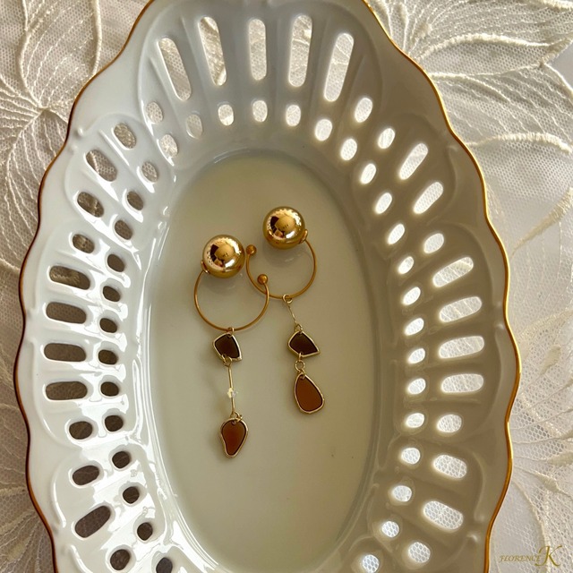 やわらかな存在感で、静かに魅せる。 ミルキーな光を放つ天然石と、繊細なカットがきらめくクリアビーズが、 光とともに揺れて耳元に透明感と穏やかな華やぎをもたらします。 しなやかに伸びるメタルラインが全体を引き締め、 甘くなりすぎない上品な大人のナチュラルアクセサリーに。 アシンメトリーな装いで印象的に。 シンプルカフとの組み合わせで、自分だけのスタイルを自由に表現していただけます。 >コーディネート提案 ・ナチュラルテイストのファッションに ・淡色コーデにやさしく映えるアクセントに ・癒しと洗練を両立させたい日の耳元に