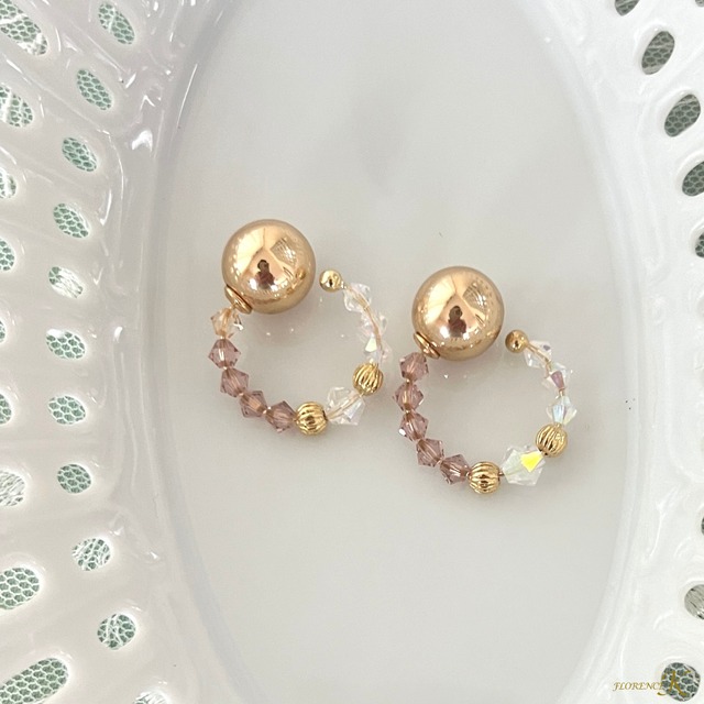 【ピンクゴールド系のスワロフスキー×ホワイトパール】イヤーカフ/ゴールド[2-1]