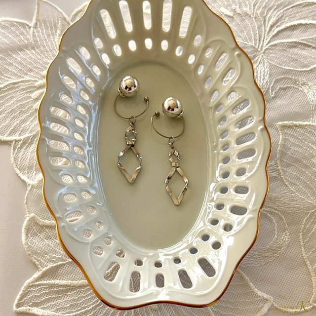 静かな存在感で、凛とした印象をまとう。 メタリックな光沢を放つツイストデザインのシルバーチャームが、 耳元で立体的に揺れ、モード感と女性らしさを絶妙なバランスで演出します。 チャーム取り外し可能タイプ シンプルなのに印象的。 洗練されたフォルムは、大人の装いにさりげなく“芯のある美しさ”をプラス。 スタイリッシュなモノトーンコーデにも、 上品なワンピースにも相性◎ アシンメトリーや重ね付けで、自分らしいスタイルに仕上げてください。 > こんな方におすすめ ✔ 甘さ控えめで上質なアクセサリーを探している ✔ ファッションとケア、どちらも楽しみたい ✔ クールで洗練された印象をプラスしたい