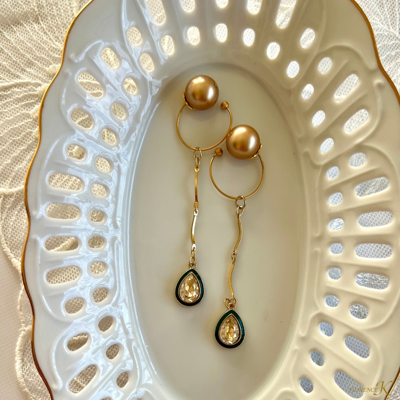 上品な光沢のパールと、存在感のあるしずく型チャームが美しく揺れる、ジュエリー感覚で楽しめるビューティーカフ。